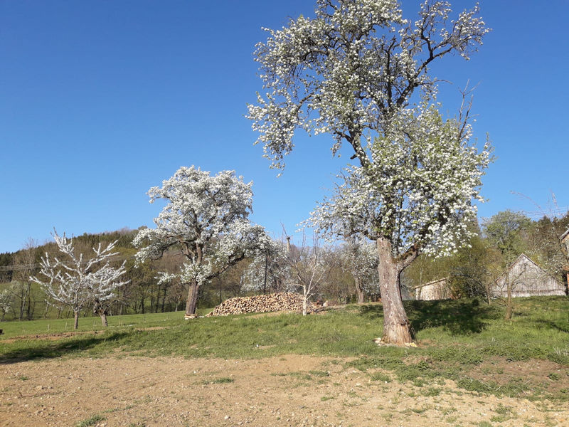 Leider vernachlässigten die Vorbesitzer in den letzten Lebensjahren aus Altersgründen die zahlreichen Streuobstbäume. Das belegen zahlreiche Misteln, die auf den Ästen gewachsen sind. Erst in den letzten Jahren wurden nach und nach das Streuobst von uns wiederentdeckt und in seiner Bedeutung gewürdigt.